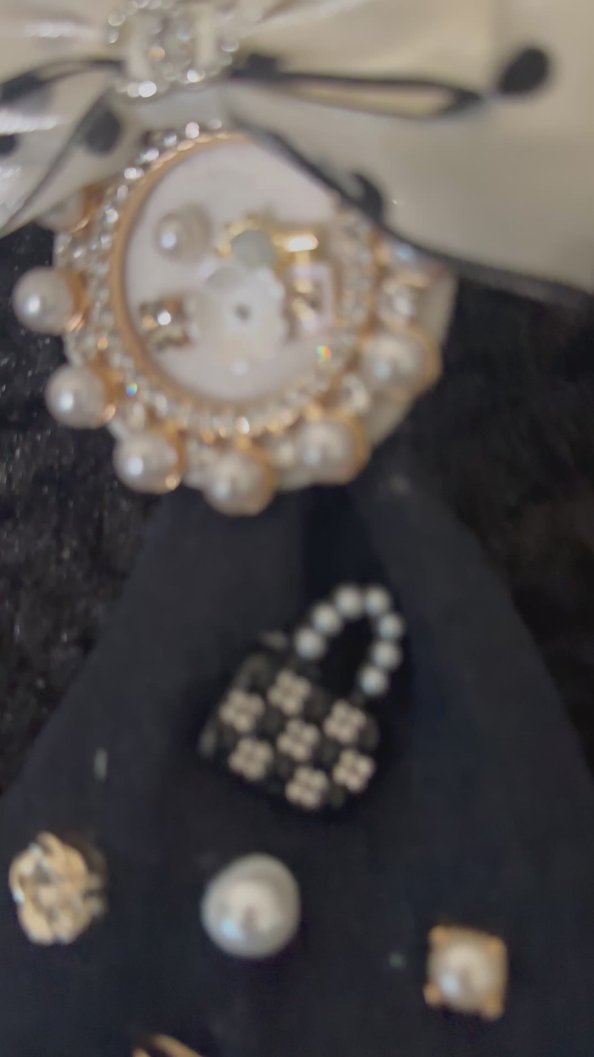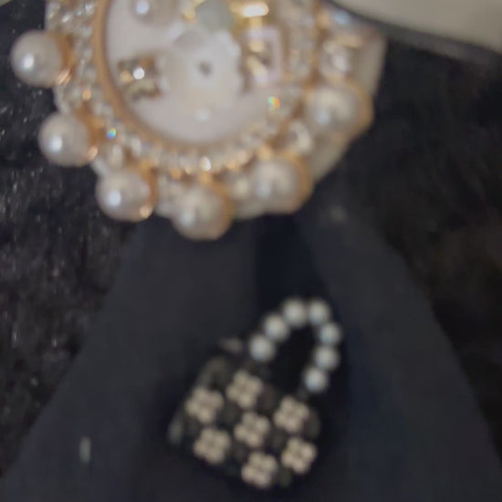 - Embellished with pearls, tweed accents, and couture-inspired details