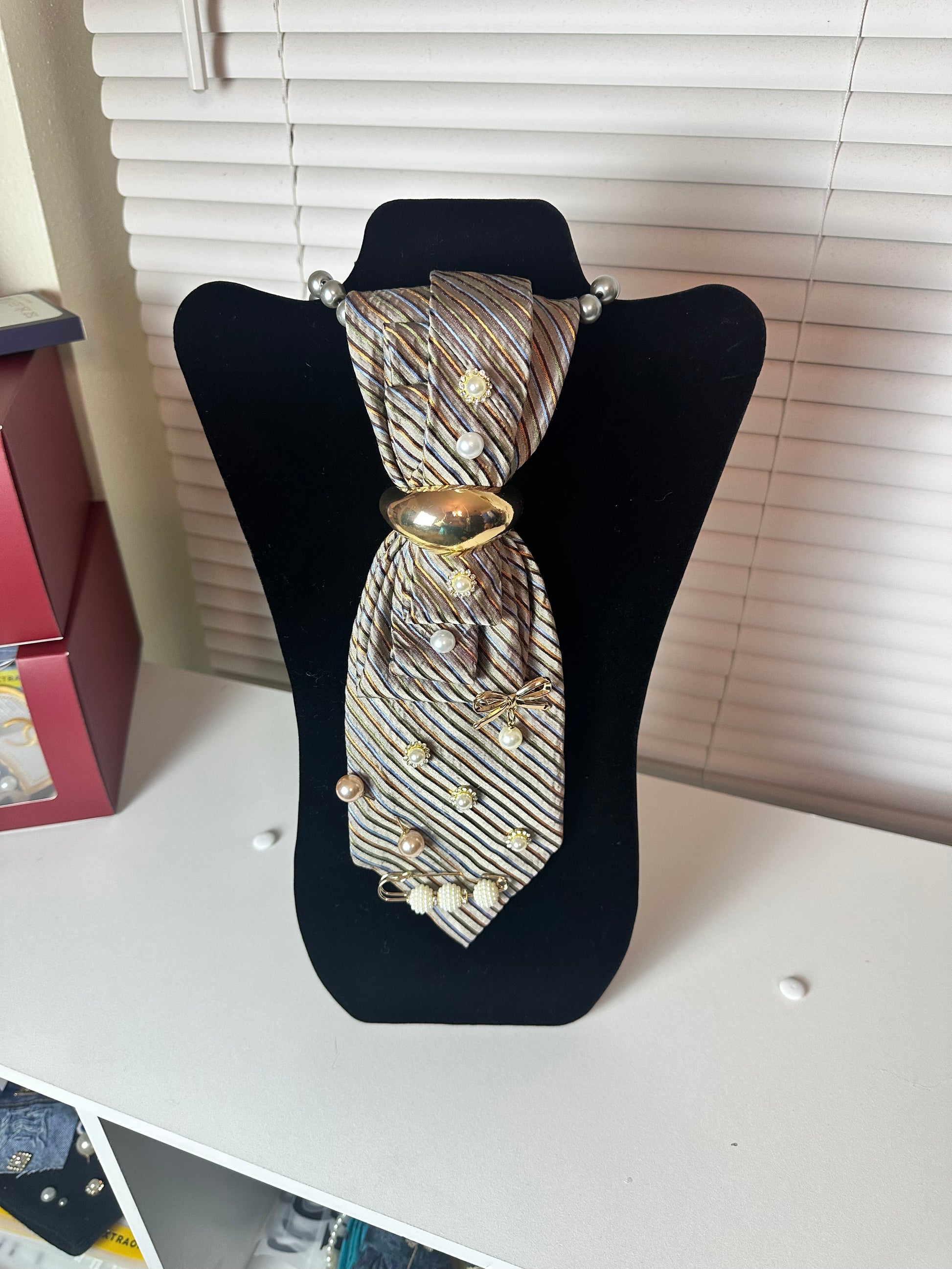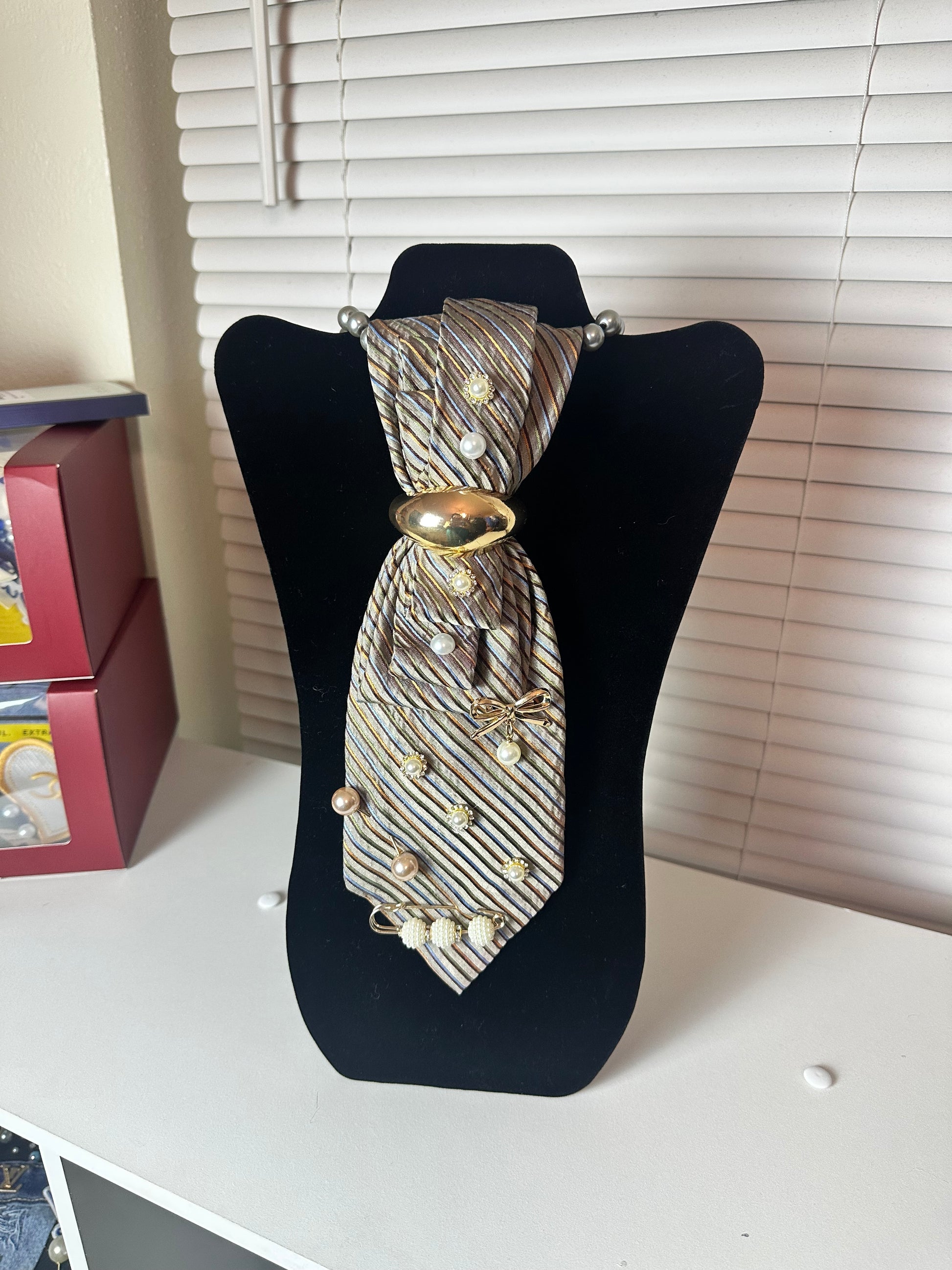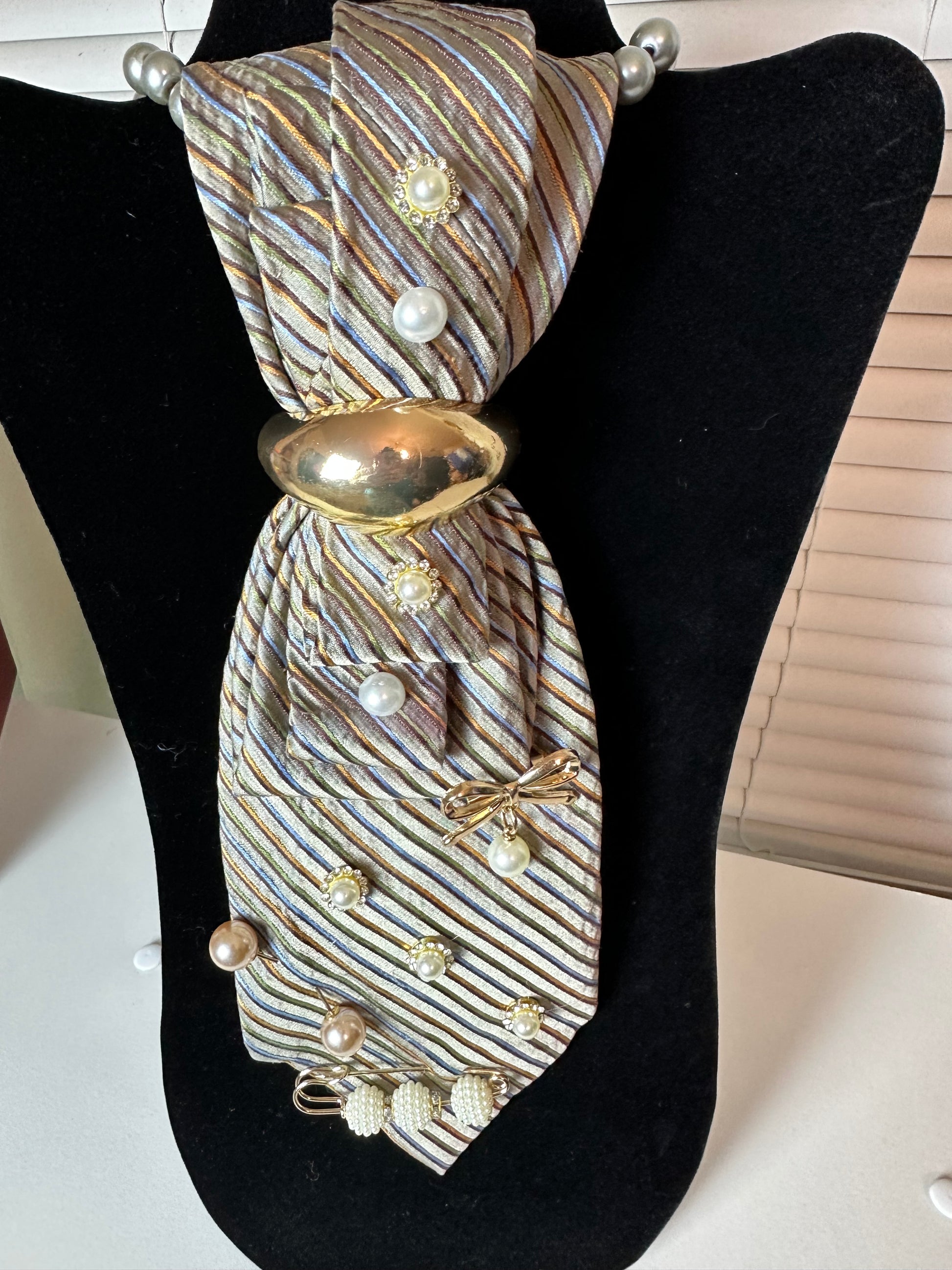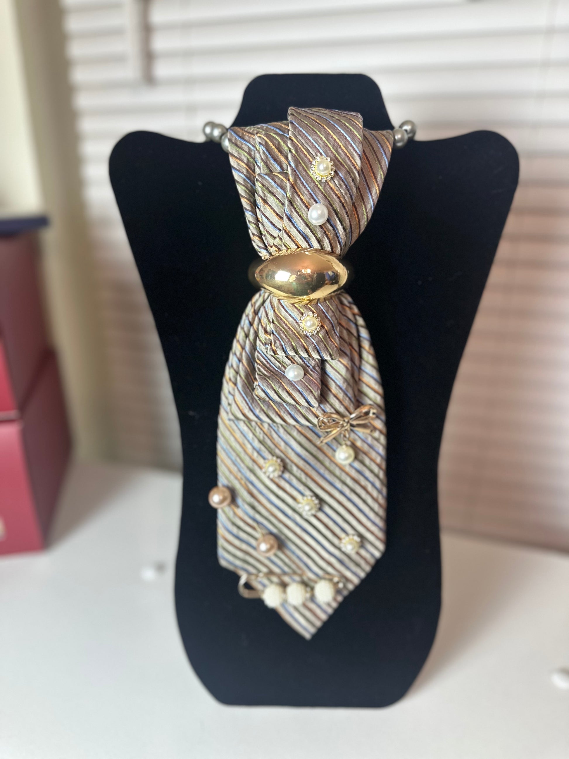 The Finishing Touch is the detail that completes the look. Designed with softly striped neutrals, layered pearl accents, and a smooth gold centerpiece, this piece brings balance, polish, and quiet confidence to any outfit. It doesn’t compete for attention—it commands it subtly, proving that true style lives in the details.